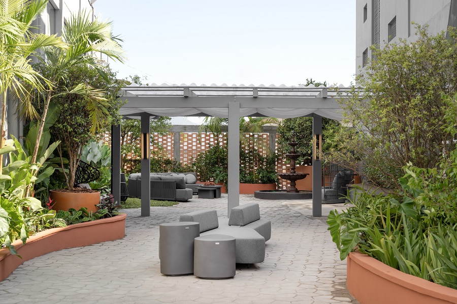 Encerrando o circuito, o ambiente Jardim Sementes Brasileiras - Conexão e Pertencimento, das paisagistas Adriana Alves e Carolina Soder (do escritório O Jardim Paisagismo), é um manifesto ecológico e cultural. Com 350 m² e um paisagismo formado exclusivamente por espécies nativas do Brasil, o espaço celebra a biodiversidade e os saberes ancestrais. Inspirado nas cidades-jardins de Ebenezer Howard e nas cosmologias dos povos originários, o jardim propõe um novo pacto entre cidade e natureza, entre modernidade e ancestralidade. Elementos como muro de tijolos artesanais, fonte de ferro fundido e lareiras ecológicas compõem uma paisagem de pertencimento e identidade. O uso de plantas adaptadas e a captação de água da chuva reforçam o compromisso com a sustentabilidade. Mais do que um espaço decorativo, o jardim é um ato de amor à terra brasileira e um convite à reconexão.