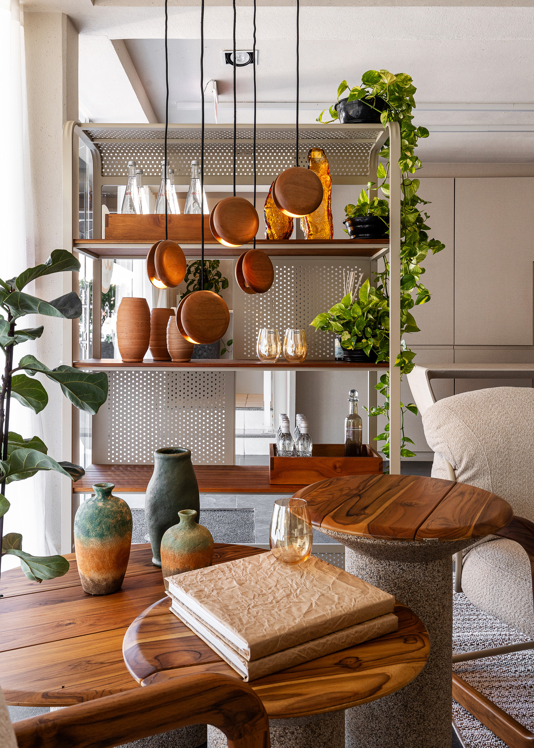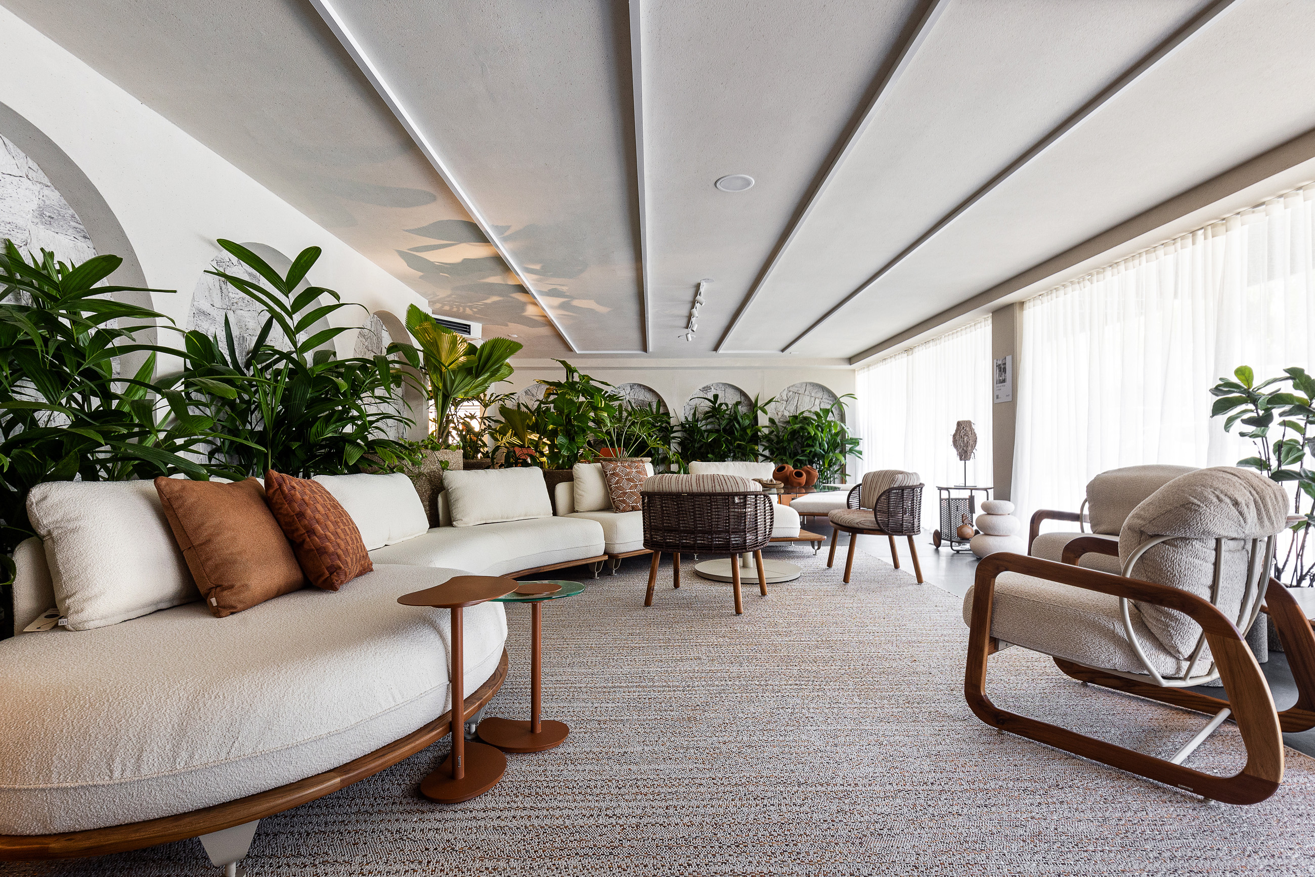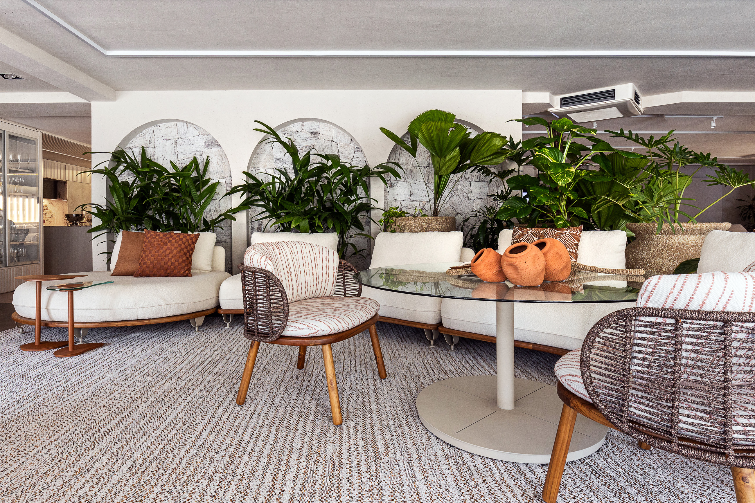 Para Rogério Lemos, diretor da ContTi Home Design, a vitrine é mais do que uma vitrine: “Não é só sobre mobiliário; é sobre criar espaços que fazem parte da vida real das pessoas. Lugares onde você quer estar e ficar.” Esse caráter afetivo se reflete na escolha da paleta de cores, que combina terrosos, areias quentes e verdes intensos. Nos tecidos claros, na textura das pedras e no toque natural do bambu, tudo colabora para que o visitante sinta o espaço como seu — um refúgio aberto, pronto para receber e ser vivido.