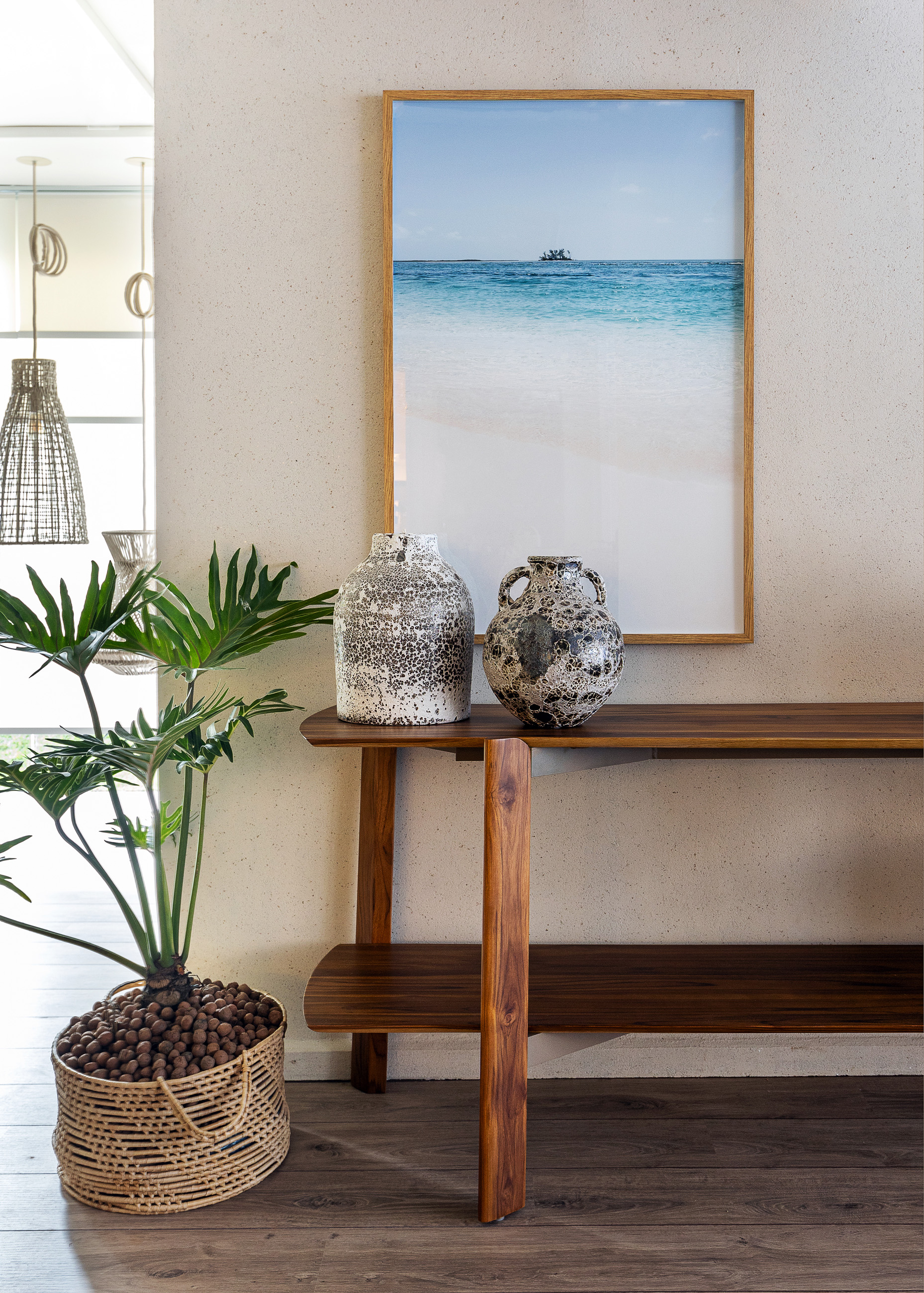 A vitrine “Terra & Brisa”, assinada pelo Woho Arquitetura, dos arquitetos Alexandre Müller e Marcelo Wolschick, nasce de uma imagem simples e potente: estar entre o calor da terra e o frescor de uma brisa vinda do mar. “Queríamos traduzir essa sensação física e afetiva em um espaço onde o visitante pudesse, mesmo por alguns minutos, se imaginar vivendo a vida lá fora, de forma natural e descomplicada”, explica Alexandre.